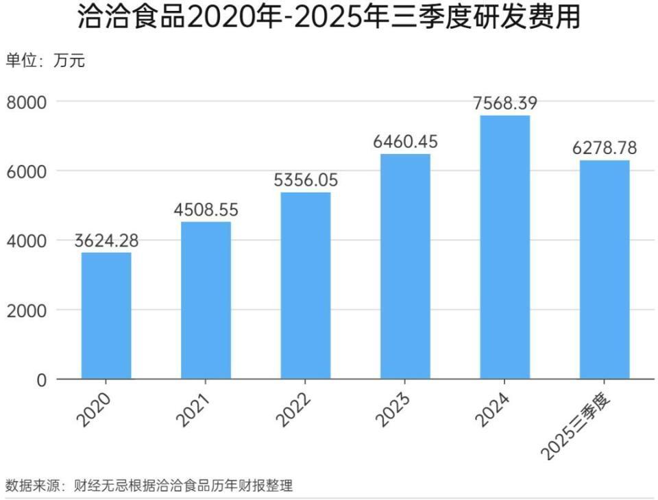 对于休闲食品企业而言,除营收和利润外,存货周转效率、应收账款回收能力都是衡量消费品渠道健康度、终端动销及经营风险的核心指标。谋求长远发展的企业,在研发投入上更舍得投入。
