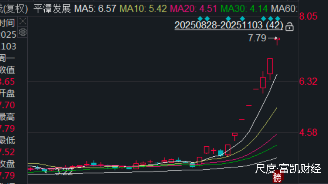 截至11月3日,平潭发展股价报收7.79元/股,当日涨幅为10.03%。从10月23日至11月3日,公司股价收获了7个涨停板。