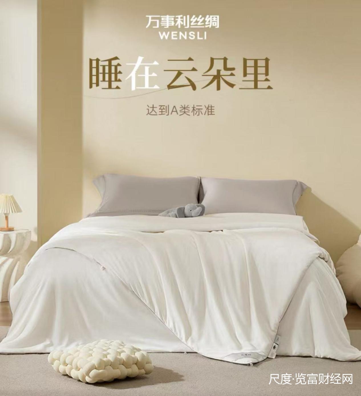 在家纺方面,万事利的云朵蚕丝被所采用的100%长绵丝源自万事利与浙江省衢州市开化县合作推进的“万亩桑园”项目。其引进的抗菌蚕茧新品种“秋风白玉”丝质纯净、丝长柔韧,经久耐用。以这种桑蚕丝生产而成的蚕丝被具有轻柔透气、恒温、冬暖夏凉、高效抑菌的特点。云朵蚕丝被也因此成为万事利各电商平台的爆款产品。