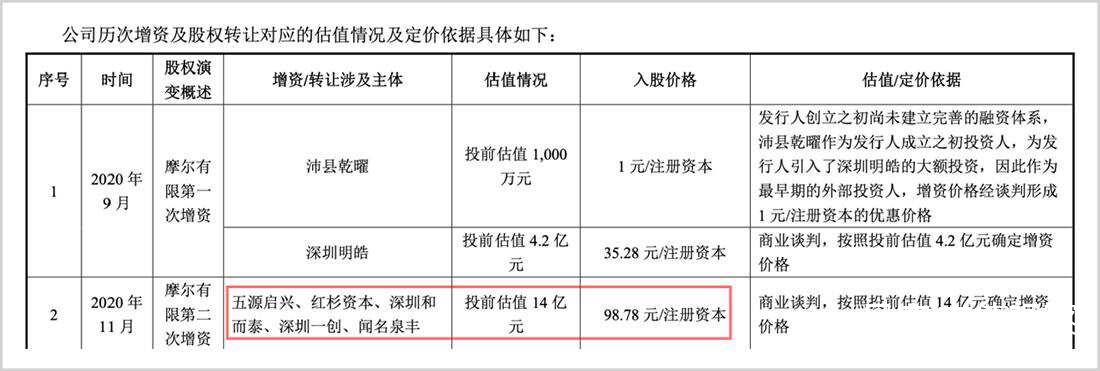 和而泰最早于2020年11月就参与摩尔第二次增资,成本仅有98.78/元注册资本,是第一家A股产业投资者,摩尔有限当时的估值仅14亿元,作为最早的一批投资人,和而泰收益极为可观。