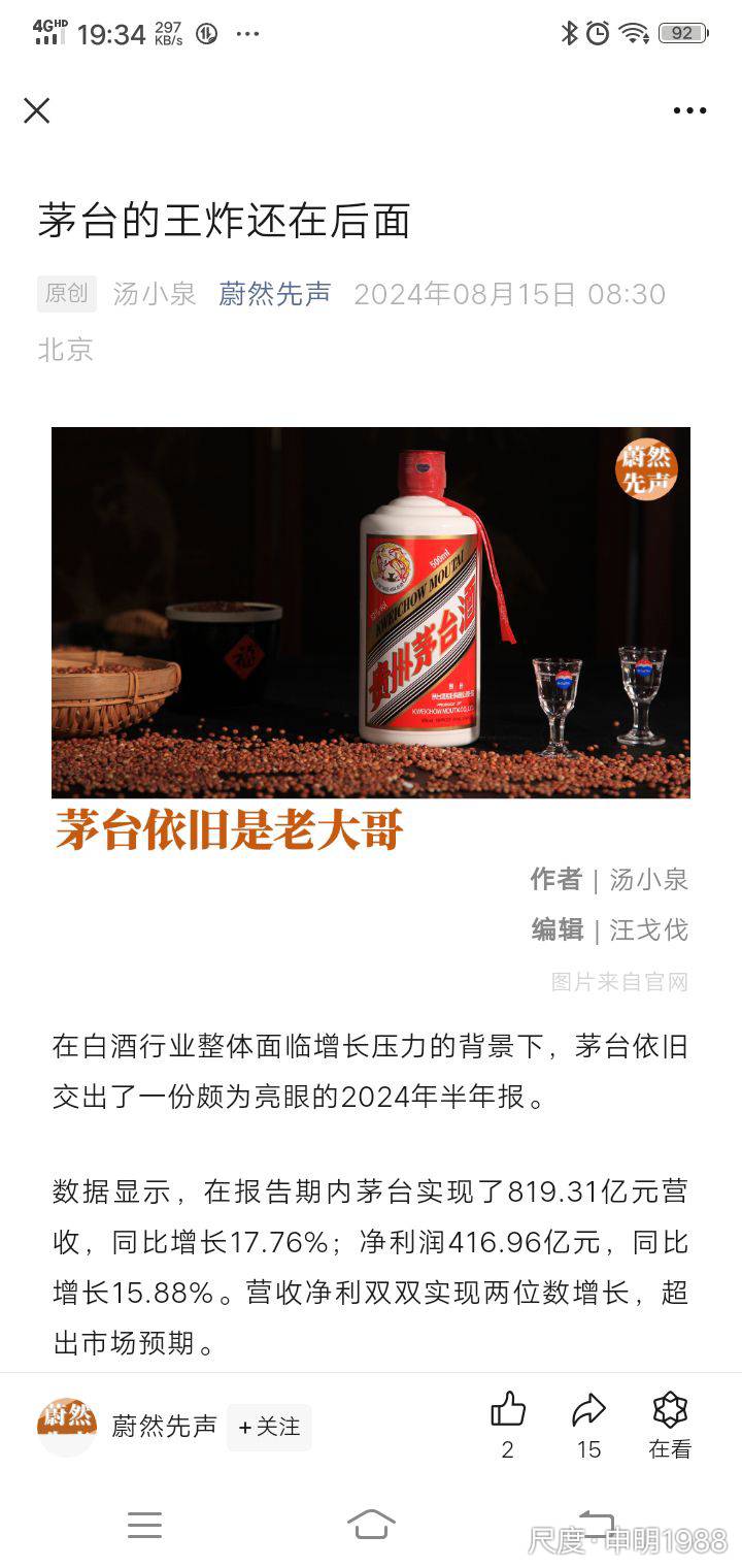 《知文知面知心知人知酒知股否?(原创续集13)》,糸个人实战投资买卖中的经历,对网上有关原股王贵州茅台酒和股票的话、事、贴、评价、评论等,辑纳成集方便查询回味。尤其是本周五下周股市连周未过中秋节放假,其股价破了1300元整数关→最低至1297.3元收于1304.13元。此辑8月底就辑录成延迟今天,观看一下其:①酒价格怎么样嘛?②股价会继续调整吗?——在1300元±19元左右是否物有所值呢?被低估值了吗?